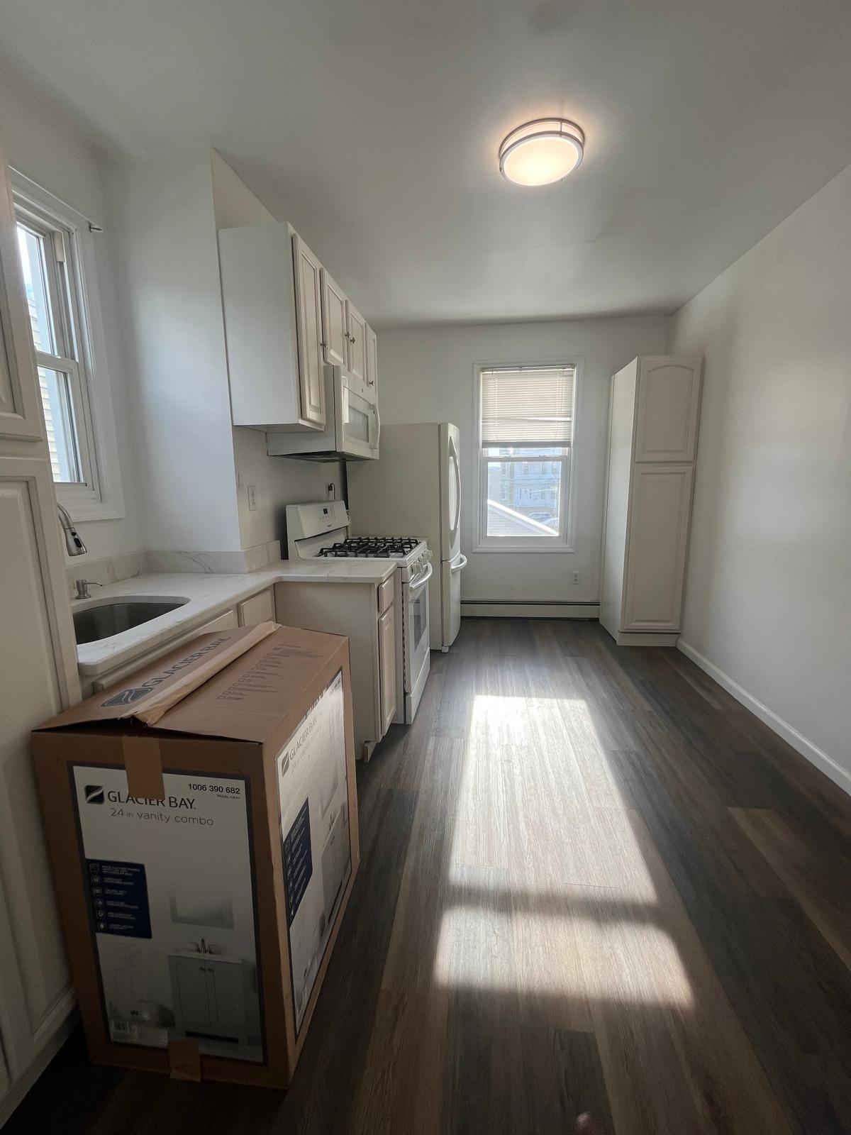 Well-maintained two-bedroom, one-bathroom apartment for rent in Kearny, NJ, offering a living room and eat-in kitchen; water and sewer are included, tenants are responsible for electricity and gas, and the property is non-smoking with no pets, no parking, and no on-site laundry.