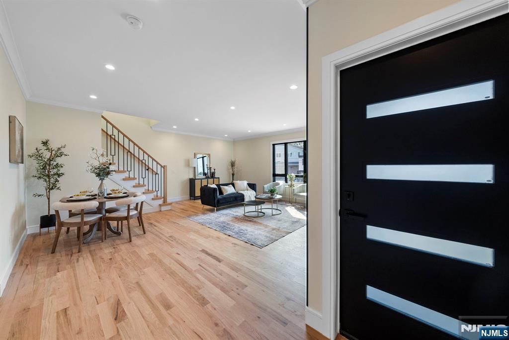 Welcome to this stunning new construction duplex, offering the perfect blend of modern comfort and stylish design. The ground level features a spacious recreation room, ideal for entertaining/gatherings, complete with a full bath and direct access to a large backyard - perfect for outdoor activities, gardening, or relaxing in the sun. Upstairs, the first level boasts a bright, open-concept living room and dining area, seamlessly connected to a contemporary kitchen equipped with high-end appliances and ample cabinetry. A convenient half bath completes this level. The second level is dedicated to restful retreats. The expansive primary bedroom suite boasts a walk-in closet plus an additional closet for extra storage, while the spa-like full bath offers a relaxing shower and a luxurious bathtub, creating a perfect sanctuary. Additionally, two more generous bedrooms, a full bath with a luxurious shower, and a convenient laundry room. Modern amenities include a built-in speaker system for ambiance, a comprehensive security system for peace of mind, a two-car garage, and paver driveway that adds curb appeal. Enjoy the benefits of new construction with energy-efficient features and contemporary high end finishes throughout. Whether you're hosting gatherings in the backyard, relaxing indoors, or enjoying the spacious interiors, this duplex offers comfortable, stylish living in a prime location. Don't miss the opportunity to make this beautiful home yours!