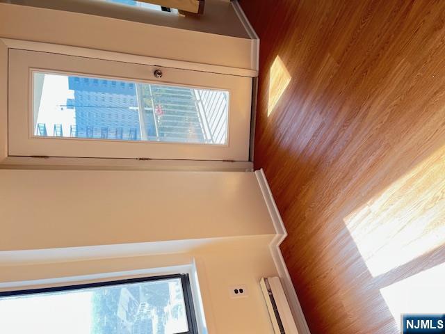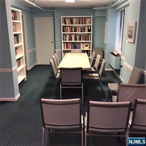 Prospect Avenue condo in luxury building with 24 hour doorperson. Freshly painted with most kitchen appliances brand new! Sunny unit facing east with balcony/terrace. Entry foyer into oversized living room. Galley kitchen updated with newer cabinets, S.S. and granites counters. Dining area off the kitchen with door to terrace. Primary bedroom has two double closets and en-suite bath with shower. Second bedroom has single closet. Express bus to NYC is steps away and two train stations to PATH. Building amenities include: outdoor pool, exercise room, library, sauna, intercom, and laundry on each floor. One garage parking space (G1-45). Come and enjoy all that Hackensack has to offer: Main Street with ethnic restaurants and shops, near three shopping malls, an entertainment center HACPAC and walking distance from Hackensack University Medical Center. As per governing documents floors must be 80% covered with padded area rugs, carpeting, matting or other sound deadening material. Balcony work is done from 8 - 4 M-F and access to balcony during work is restricted.