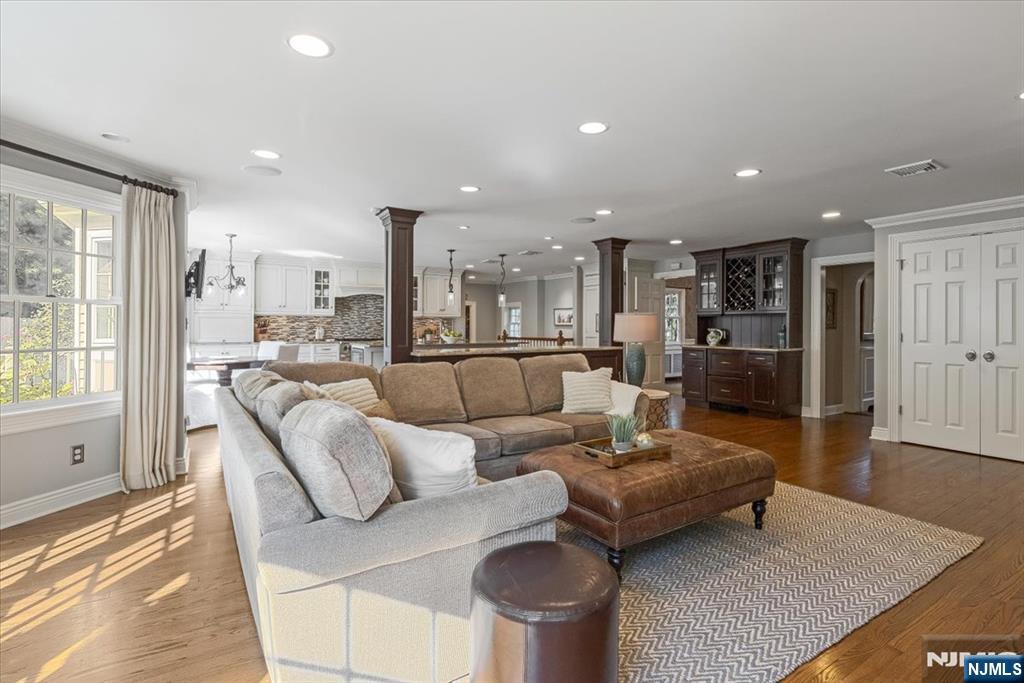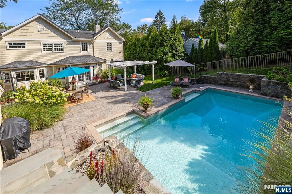 Gorgeous 4/5-bedroom, 3.5-bath Colonial in the coveted Willard School area of Upper Ridgewood. Boasting an expansive open floor plan, this home is ideal for modern living and entertaining. The heart of the home is a chef’s dreamâ€â€쳌an oversized kitchen with two islands, high-end appliances, and a bright breakfast nookâ€â€쳌all opening to a spacious family room with a gas fireplace & full wall of windows overlooking the backyard oasis. Built-in sound system provides music inside & out. The first floor also features a formal dining room, elegant living room w/ 2nd fireplace, private office, and a custom mudroom with built-ins, pantry, closets, and powder room. Upstairs, the spacious primary suite includes a spa-like bath & dual custom walk-in closets. Three additional large bedrooms, two hall baths, a 5th bedroom or office, and laundry room complete the second floor. The fully finished basement offers two rec/media rooms, a home gym, and abundant storage. With over 4,500 sq ft of finished living space, this spacious home provides flexible living areas for every lifestyle need. Step outside to your resort-style backyard with an in-ground pool, stone patio, pergola, and elevated, private lawn. Professionally landscaped with mature plantings and lighting throughout. This deep 88x219 property sits up away from the street adding to its private feel with a long driveway leading to an oversized 2 car detached garage. Call listing agent, Pam Chmiel at 201-248-6780 for a pr