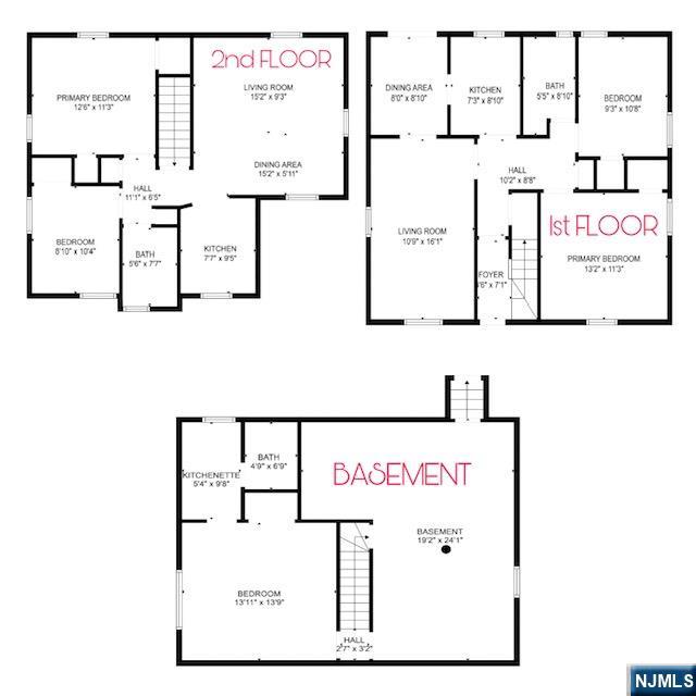 Welcome to the multi-family you have been waiting for!!! The first floor has two bedrooms plus access to the basement with a finished room and bathroom, perfect for extra living space. Upstairs you will find 3 more bedrooms, giving you plenty of room for everyone. Enjoy the convenience of a 2-car garage, a driveway that fits up to 4 cars and a great back yard to relax of entertain. Tucked away from the main road yet just a short walk to ShopRite and mass transportation. Don't let this gem pass you by!!!!
