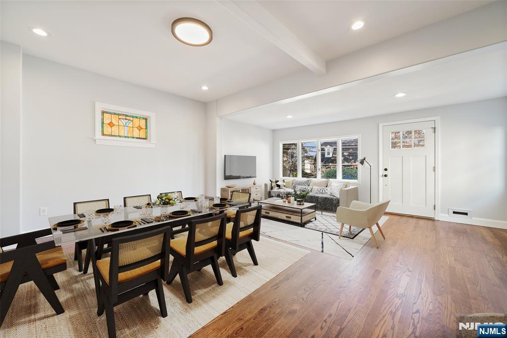 Welcome to 30 Humboldt St - a truly unique and versatile home in the heart of Wood Ridge, NJ! This updated, energy-efficient 4-bedroom, 4-bath smart home offers central cooling and heating across four expansive levels of living space, complete with NYC skyline views. 1 Family Thoughtfully designed for multi-generational living, extended family, or in-law accommodations, the main level features side-by-side kitchens, living, and dining areasâ€â€쳌ideal for dual-living arrangements or a potential duplex setup, yet easily convertible back to a traditional single-family layout, if desired. The finished basement includes a summer kitchen, full bath, and private entrance, offering even more flexible space for guests, a home gym, or recreation. Step outside to a spacious deck and patio, fenced-in backyard, long driveway, and a heated, EV-ready garage for added comfort and convenience. Ideally located only 20 minutes from NYC and just 5 minutes from both the Wood-Ridge and Wesmont train stations (Bergen & Pascack Valley lines), with walkable access to downtown shops, schools, and parks. Featuring high-end finishes, adaptable living spaces, and a prime commuter location. This “Single-Familyâ€Â쳌 home lives like a two-family duplex in terms of lifestyle, layout & functionality onlyâ€â€쳌a rare and flexible opportunity in today’s market. Owner holds NJ RE Lic