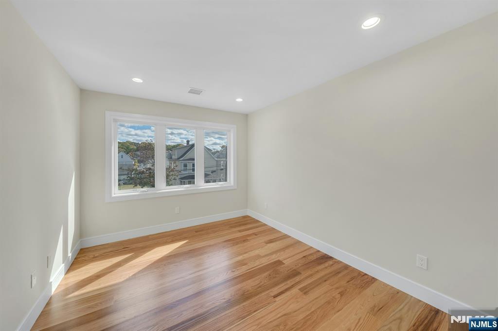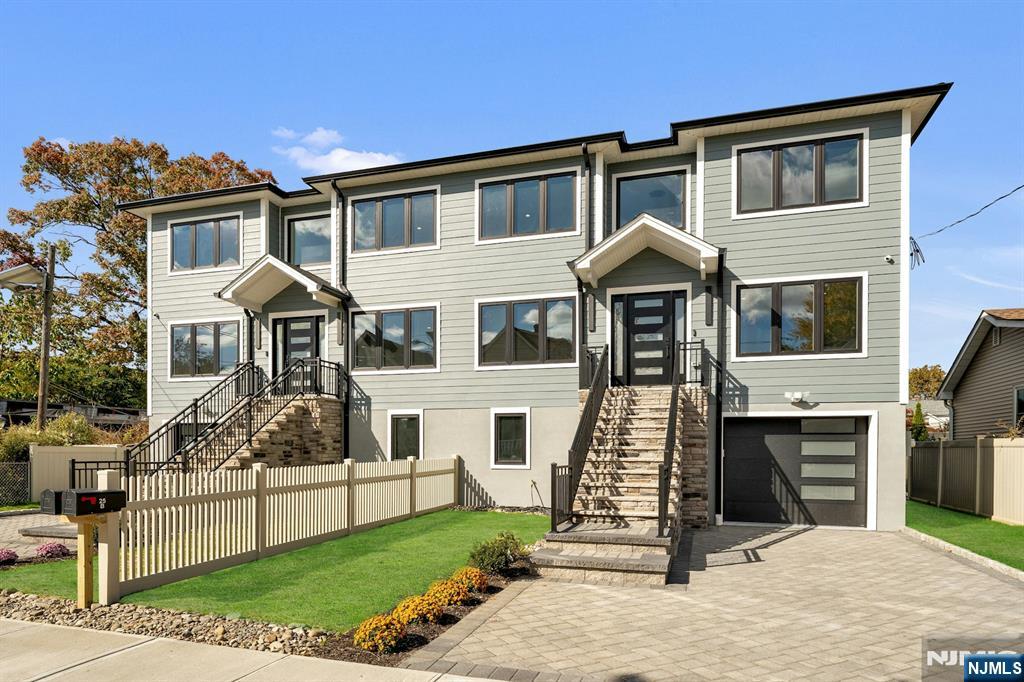 Brand new East-facing 4-bedroom, 3 full bath townhouse/duplex style condo with NO Maintenance fees! This quality-built home measures approx 2,400 sq ft (plus an additional 1,000 sq ft on ground level). Living room, dining room, den and separate family room combined with an open concept kitchen with custom cabinets, quartz tops with tiled backsplash, stainless steel appliances, which include stove, built-in microwave, dishwasher, and refrigerator with ice maker/water dispenser. The family room has an electric fireplace and sliders to 10' x 15' composite deck overlooking a deep yard. 2nd floor features 4 bedrooms, laundry closet with washer & dryer & 2 full baths. Master bedroom with 2 walk-in closets and private bathroom with shower stall. 2 gas forced air heating & air conditioning systems, gas tankless water heater, security camera system, hardwood floors on 1st & 2nd floor, 2nd floor pre-wired for house router. Ground level has access to the garage and walkout. 150 amp electric panel. Built in 1-car garage with a door opener, the driveway can accommodate a few cars. Lovely landscaped property. Located in a flood zone, all finished areas are above the flood elevation line, and flood insurance is quoted at $1255 per year! 2 blocks to NJ Transit bus stop #160 to NYC Bus Terminal in less than 30 minutes on average! Includes a 10-year new home warranty!