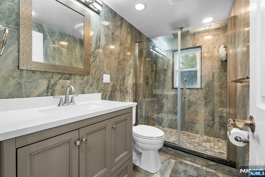 Welcome to this beautifully renovated home nestled in one of Teaneck’s most desirable tree-lined neighborhoods. Thoughtfully updated throughout, it features a stunning kitchen with new counters, refinished flooring, elegant crown molding, recessed lighting, and tastefully modernized bathrooms. The main level offers a bright kitchen, formal dining area, and spacious living room with a charming fireplace, plus two comfortable bedrooms and a full bath. Upstairs includes two large bedrooms, another full bath, and generous closet space. The finished lower level adds laundry, two versatile rooms, and a full bathâ€â€쳌ideal for guests, a home office, or recreation. Step outside to a private backyard oasis, perfect for peaceful relaxation or stylish entertaining.