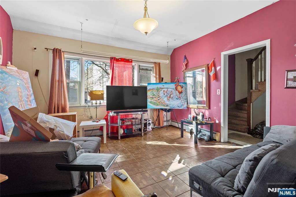 Well-located single-family home in Passaic offering great potential! The first floor features a living room, formal dining room, kitchen, and half bath. The second floor includes three bedrooms, a full bath, and access to a finished attic that can be used as additional living space. Spacious rooms throughout. This property sits on a rare double lot, providing excellent options for expansion. Exterior highlights include a large backyard, a 2-car garage with mezzanine level, and a 2-car wide driveway. The home also offers an unfinished basement with French drain and low taxes of $8,526. Home needs some TLC but offers strong value and opportunity. Don't miss it!