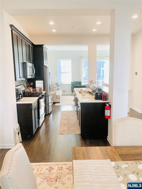 Immaculate and modern 2024 Townhouse, practically new. Open Floor Plan with hardwood floors throughout on the 1st floor living area with Very Spacious Living Room w/Gas Fireplace, Modern Eat-in-Kitchen with quartz counter tops and high-end appliances, spacious Formal Dining Room, Huge Balcony off LR for Relaxation and Entertaining, Powder Room, and 9' Ceilings. Front and Rear Entrances on Ground Level with Bonus Room, Full Bath, two-car Garage and driveway for two cars tandem. Primary Suite w/Full Bath, two additional spacious bedroom and hall Full Bath (SOT). Laundry in unit with high-end washer and dryer. Plenty of Closet Space throughout. Pets conditional: cats, small dogs; additional monthly fee may apply. Requires Credit History/Score (Score 700+), Interview, Income = 3X the monthly rent.