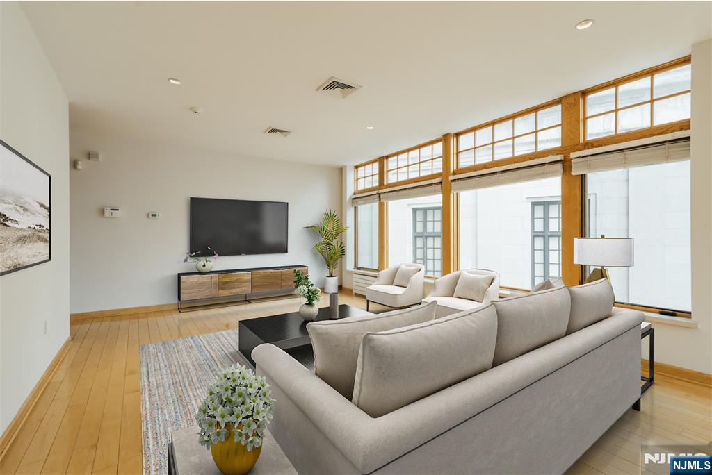 Gorgeous 1 bedroom apartment with large almost floor to ceiling windows providing tremendous natural light. Very large Living and Dining room area leading to what what will be an all NEW Kitchen! Kitchen is being redone with new cabinets, countertop, appliances, flooring and backsplash. Features include high ceilings, hardwood floors throughout, Large closets, in unit washer /dryer/ Central AC, and one Parking Space!! Bedroom can accommodate a king size bed and large furniture. Spacious bathroom will be refreshed with a new vanity, and touch ups. *Excellent location with nightlife, shopping, and restaurants all around. Near the the Train Station offering an easy commute to NYC, Hoboken, etc.