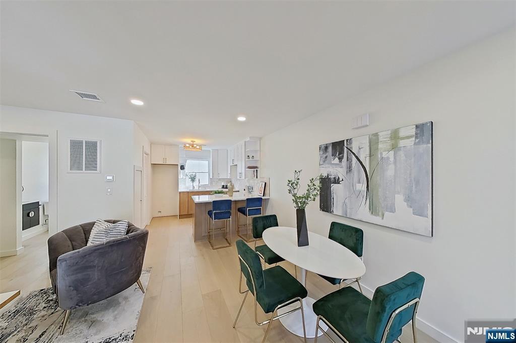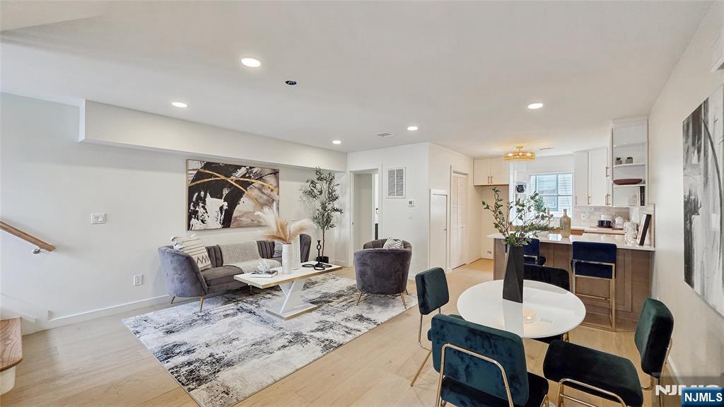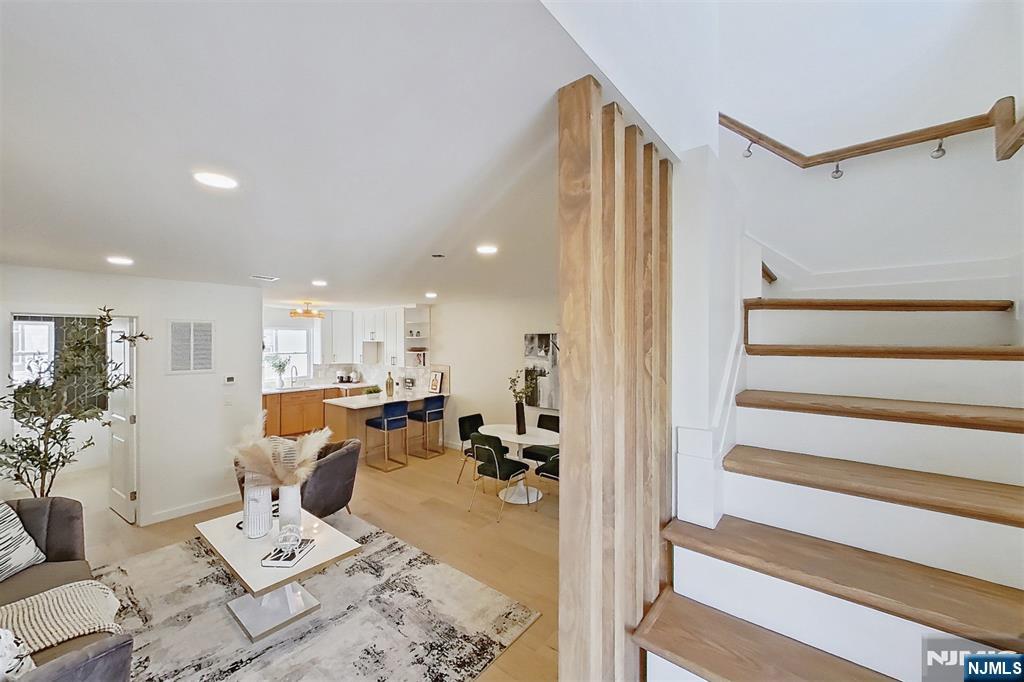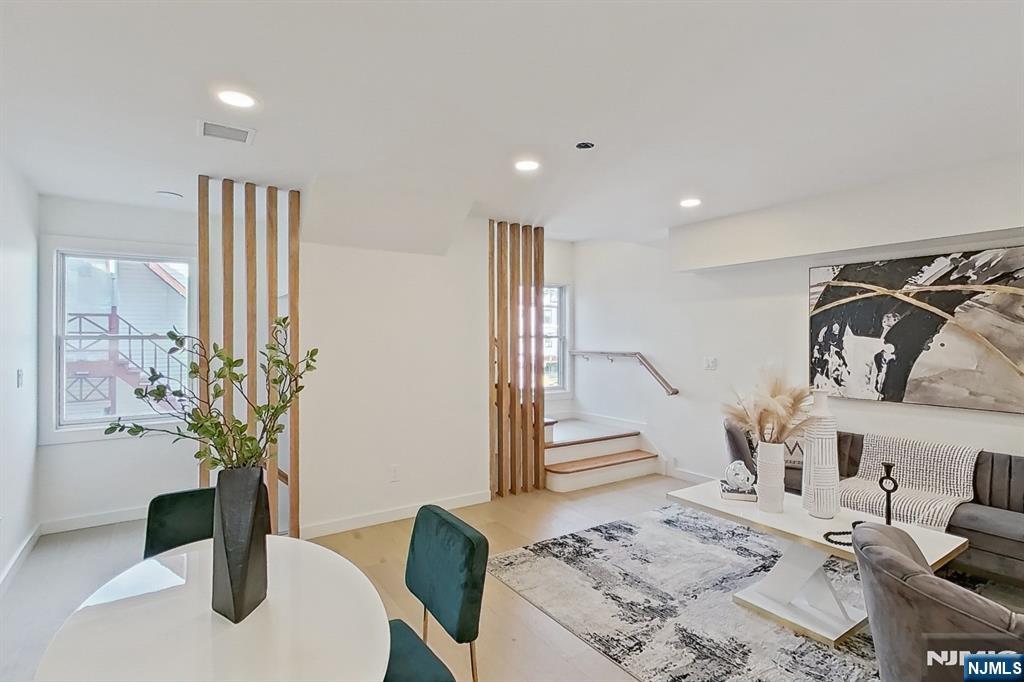 Javier Hill presents a rare opportunity to own a newly constructed townhome community in Passaic, NJ. This exclusive collection of eight thoughtfully designed two-story residences offers the space, privacy, and functionality of single-family living with the ease of modern new construction. Each home features a private, LED-lit entrance and direct interior access from a two-car garage with dedicated mechanical, storage, and laundry spaces. The main living level showcases a bright, open-concept layout ideal for entertaining and everyday living, highlighted by abundant natural light and a decorative pine wood partition that adds warmth while framing the staircase. The kitchen is both stylish and functional, featuring ceiling-height wood cabinetry with crown moulding, white granite countertops, open shelving above the island, full-size stainless steel appliances with range hood and pantry storage. A well-appointed half bath with timeless finishes completes this level. Upstairs, three generously sized bedrooms offer ample closet space, including a primary bedroom with a full walk-in closet. The full bathroom features modern fixtures, a deep soaking tub, glass shower doors, and a custom granite-topped vanity. Additional highlights include central heating and air conditioning, energy-efficient windows and doors and high-set windows for added privacy and natural light. Javier Hill delivers modern design, thoughtful details, and comfortable livingâ€â€쳌crafted for today’s lif