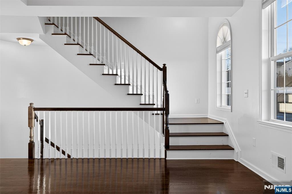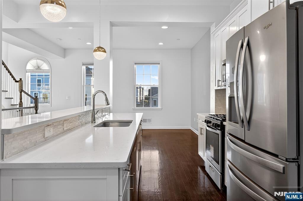 Call Charmy Morzaria at 609.619.2198 to tour the home. Welcome to FINEST & sought after Colonial Style Luxury townhomes in Wright Place Community of Wood Ridge. Beautifully/manicured green lush lawn, colorfully arched flower walkway welcomes you in. This home includes front & rear entrance w/2car garage, 2 car driveway. 1st floor has 9ft high ceilings, tall windows, closets, junior bedroom suite w/full bath. Dramatically arched staircase will bring you up to 2nd floor that boasts 10ft high ceilings,tall windows,massive dining space,modern and beautiful updated white Kitchen w/breakfast bar,Stainless steel appliances,quartz countertops,large living room w/warm & inviting fireplace, pvt.outdoor deck and half bath;open concept layout. 3rd floor offers primary bedroom w/full bath, 2 large closets, 2 add'l bedrooms, 3rd full bath, laundry room w/storage, hardwood floors. 2 Zone heating/cooling w/separate control on each floor.Beautiful & Sought after town of Wood-Ridge has restaurants,coffee shops,parks & just mins from Catherine Doyle elementary school,Train station & NJ bus(comes every 10 min & directly goes into Port Authority)for quick commute to NYC.This community has well maintained green courtyards,play area,dog park,sports field,much more.