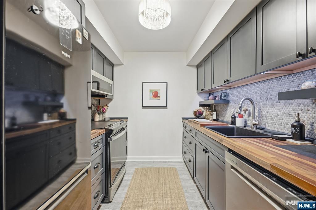 Welcome home, to this updated, Sleepy Hollow ground level unit. Why rent, when you can own! Features include: New kitchen with custom cabinets, butcher block counter tops, penny round backsplash, and stainless-steel appliances. Renovated bathroom, Spacious bedroom with ample closets, and laundry within the unit. The open floor plan boasts sunlight through two sliding doors, to your own private patio. This recently painted unit, has updated electric, central air, nothing to do but move in. Assigned parking spot, right outside your door. Commuting is a breeze as you are steps to NYC buses, shopping, restaurants, movie theatre, stores, parks, and Nutley schools.
