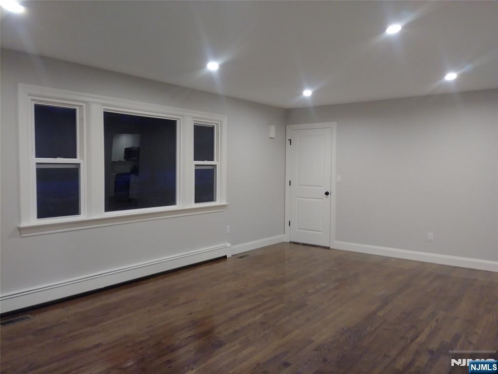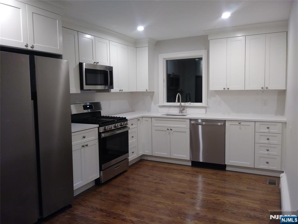 This is a completely redone, very spacious, quality 1st flr apartment! Offers a new eat-in kitchen w/shaker cabinets, quartz counter, tile backsplash and stainless applncs. New bath has a 48" vanity, walk-in tiled shower. and 2 linen closets. The entire interior has been freshly painted and hardwood flrs refinished. Overhead lighting in all rooms...recessed in the living rm & kitchen. All new windows and quality solid wood interior doors. All good-sized rooms and closets. Also C/A/C! This is a top-notch apartment redone by a quality builder. Basement has inside access and offers separate laundry hook-ups, an additional closet, private storage rm; and half bath for convenience. Also includes 1 garage bay; and shared use of the yard & double width driveway w/2 spaces each. Located on a quiet side street in a great town with great schools and is convenient to virtually anything you could possibly need. Lease application, credit report, proof of income, insurance, first $150 ea repair responsibility of tenant. Landlord maintains landscape. Tenants handle snow. Pets considered on a case-by-case basis. No smoking or vaping in the house or garage.