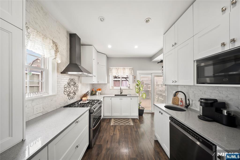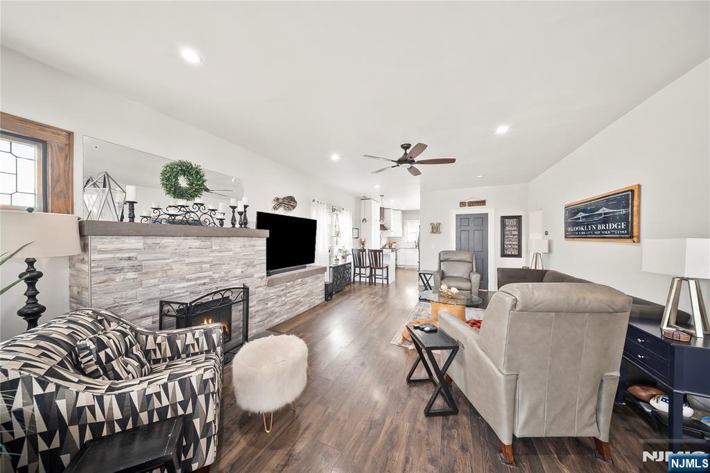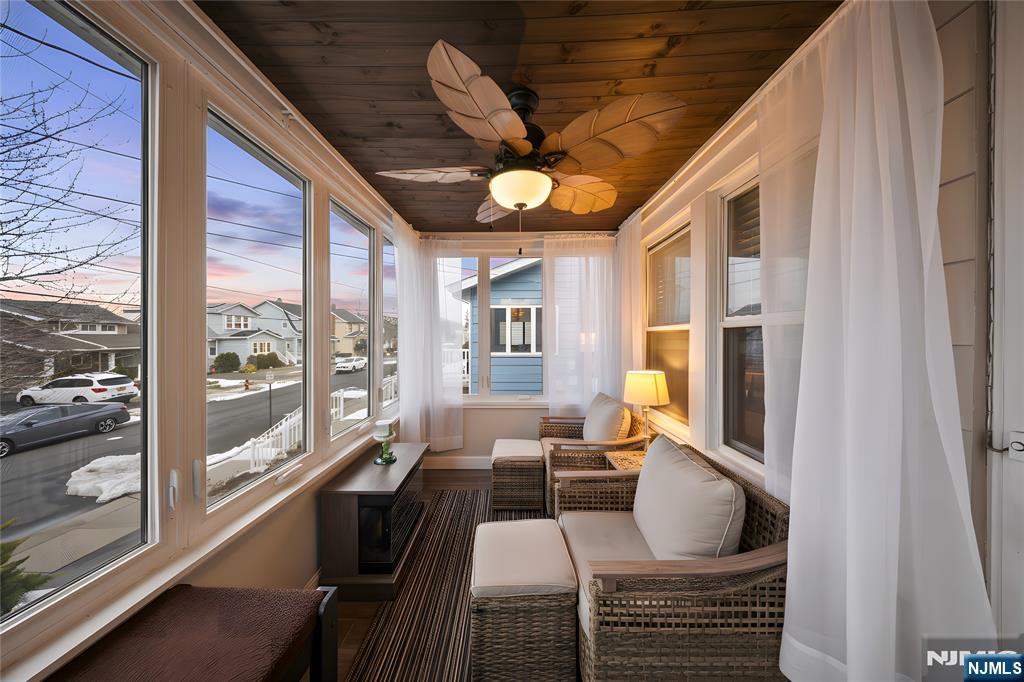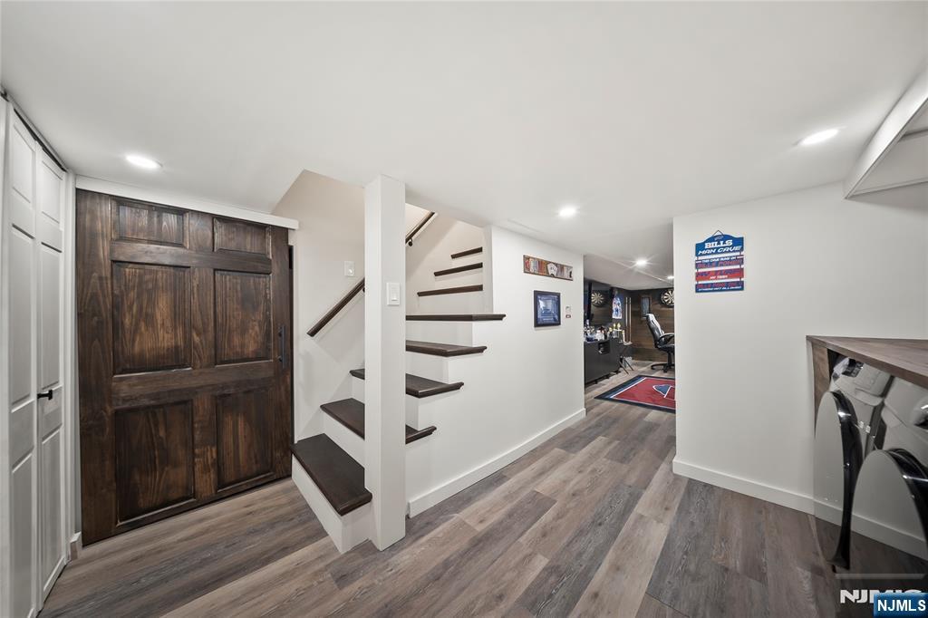 Beautiful three-bedroom, 1.5 bath home with office/bonus room in a friendly, sought after neighborhood. The first floor welcomes you with a bright, windowed porch perfect for sunset views, leading into a spacious living room that opens to a modern kitchen, featuring thoughtful storage solutions and a separate prep sink. Appliances are staying! A dining room, office/bonus room, and full bath complete the main level. Three bedrooms and an updated half bath are located on the second floor, providing privacy and comfort. The partially finished basement offers a fully furnished entertainment area with two wall-hung TVs, perfect for hosting big games! The dedicated laundry room comes with one-year-old washer and dryer and has plenty of closet storage. Additional storage space is also available in the unfinished basement. The backyard oasis is designed for relaxation and entertaining. This space features a covered hot tub with stone-top bar, covered outdoor sectional, and additional seating with an outdoor television. Located just a short walk from North Arlington’s schools, shops, and public transportation. Major upgrades include a 4-year-old roof with lifetime transferable manufacturer and contractor warranties, new vinyl siding, new driveway and upgraded 200-amp electrical service. Many items will remain, making this home truly move-in ready!