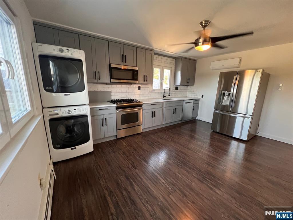 Enjoy this beautiful, bright and spacious 2 bedrooms apartment on 2nd floor in an owner occupied house. Modern kitchen with Granite countertops, stainless still appliances. Laminate floors throughout and completely renovated bathroom. Laundry in the kitchen provided by landlord. Central AC. Tenant to pay additional fee of $150 for the electric usage per month, there are solar panels under Landlord's account, Tenant pays gas/heat. Landlord pays for the water. No smoking of any kind allowed on the premises. No pets allowed. Street parking only. No use of yard.