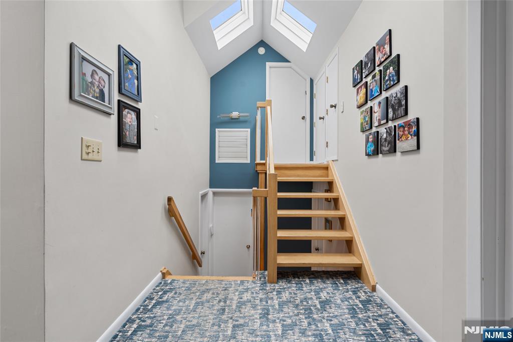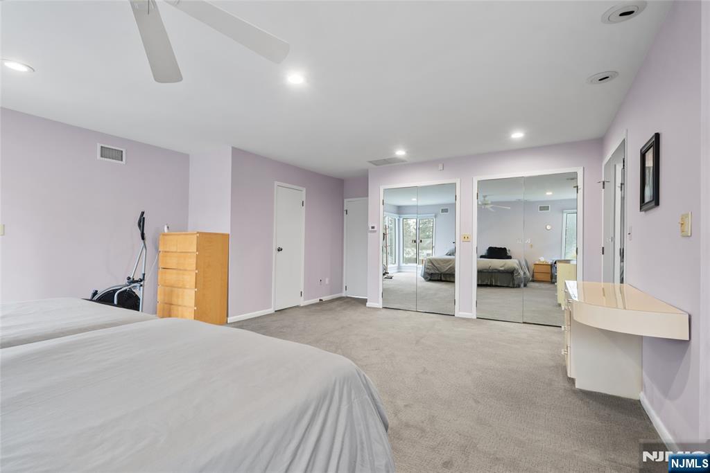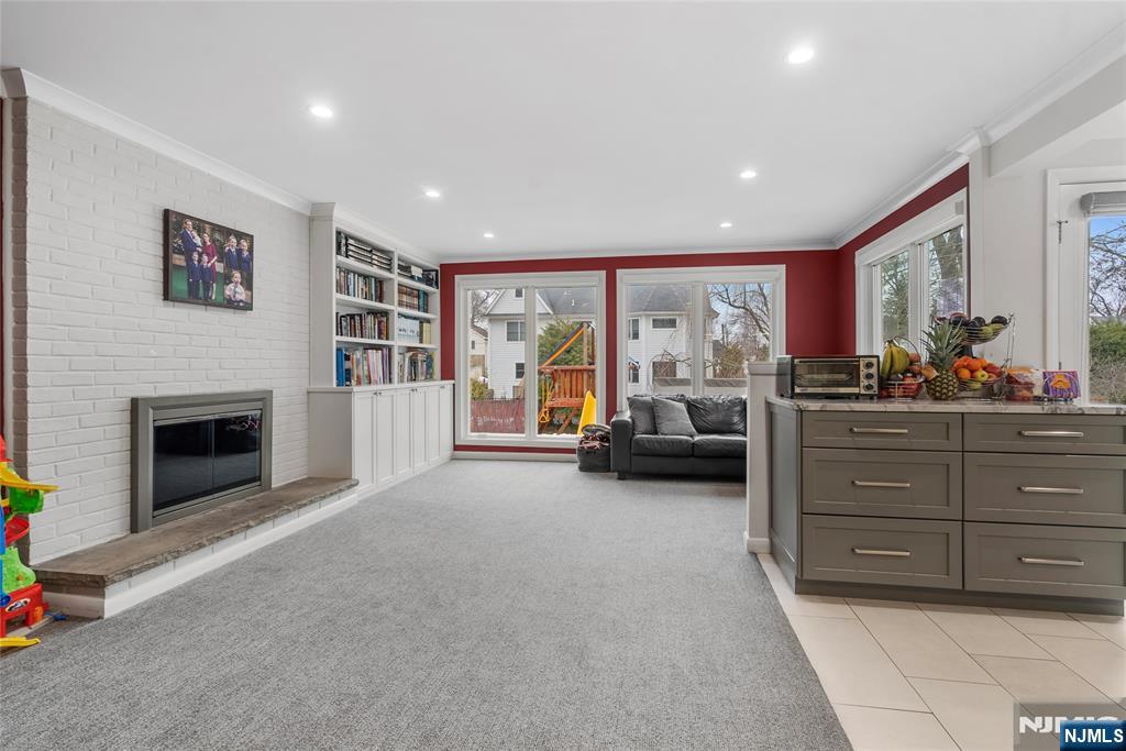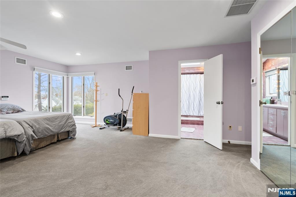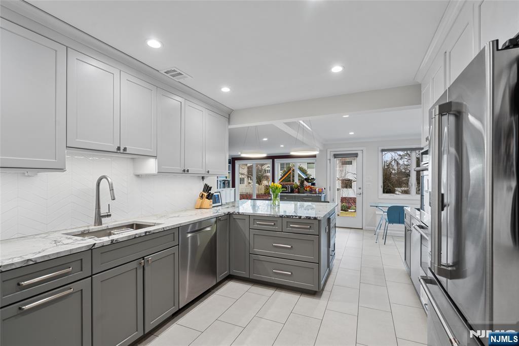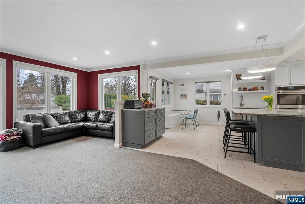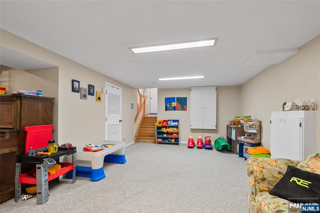 Sun-filled and exceptionally spacious, this beautifully maintained split-level home offers multiple levels of comfortable living, generous room sizes, and wonderful natural light throughout. The main level features a bright living room that flows seamlessly into the dining room, creating an ideal layout for both everyday living. The updated eat-in kitchen includes two ovens, two sinks, two dishwashers, a five-burner stove, and a bright dining area. The family room is filled with natural light from large windows and centers around a classic wood-burning fireplace. Upstairs, the home offers five bedrooms across two levels. The first bedroom level includes two bedrooms and a full bathroom with double sinks. The next level features two generously sized bedrooms and a full bathroom with double sinks and a shower over the tub. Large primary suite with multiple closets and a private bathroom. The lower level provides flexible living space with a mudroom featuring built-in cabinetry, a small office area, and convenient access to both the backyard and garage. The finished basement level offers a spacious recreation room, a powder room, and a private guest suite. This suite has its own entrance to the backyard. Outside, the property features a sprinkler system, and the house is equipped with a Tesla EV charging station for modern convenience. A rare opportunity to own a bright, spacious home with flexible living areas in one of Teaneck’s most desirable neighborhoods.