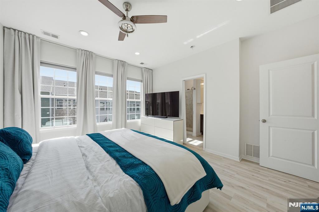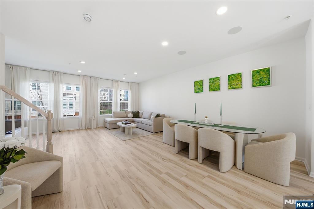 Welcome to one of North Jersey’s most desirable communities, Wood Ridge, where modern living meets unbeatable convenience. Perfectly situated just a short walk to the NJ Transit train station, this home offers a seamless commute to NYC in under 30 minutes. You’re also minutes from major highways, bus routes, and premier destinations like American Dream and MetLife Stadium, along with shopping and dining. This spacious townhome offers approximately 1,935 sq ft of thoughtfully designed living space, featuring 3 bedrooms, 2.5 bathrooms, and a versatile office that can easily convert into a large 4th bedroom. Enjoy sun-filled living with a south-facing deck providing all-day natural light, ideal for relaxing or entertaining. The home also includes parking for 4 vehicles (2 car garage + 2 car driveway), a rare feature. The modern kitchen is designed for both style and function, complete with a large center island, chef-grade appliances, custom pantry, and quartz countertops. Upstairs, the primary suite offers a private retreat with a soaking tub, while custom shelving and cabinetry throughout the garage and closets provide exceptional storage. Additional highlights include light-toned flooring, freshly painted interiors, and recessed lighting throughout, creating a bright, modern feel. Residents enjoy community amenities including playgrounds, athletic fields, and on-site conveniences shops A perfect blend of space, light, and location, this home truly checks every b