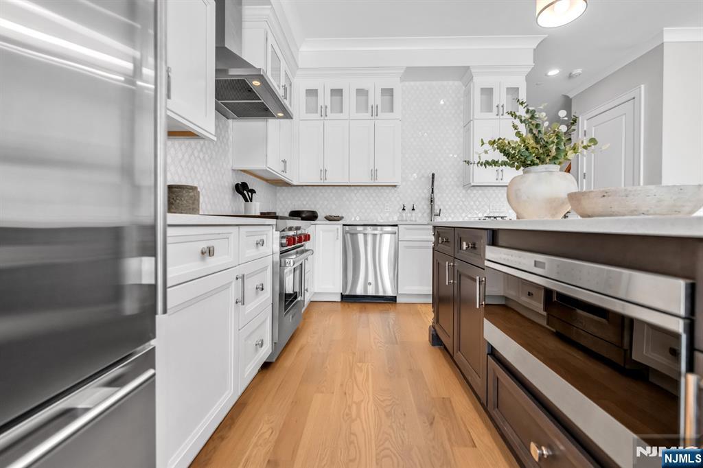 Stunning luxury interior townhome in Gabriel Estates, a boutique community in the heart of Paramus. Built just a few years ago, this residence has 3 bedrooms, 2 full baths, and 2 half baths, the home offers soaring 10-ft ceilings on the main level and 9-ft ceilings upstairs, creating a bright, airy ambiance. The gourmet kitchen showcases Sub-Zero and Wolf appliances, quartz countertops, and sliding glass doors that open to a private, fenced backyard. The impressive primary suite includes a massive walk-in closet and a spa-like bath with a Jacuzzi tub, oversized shower, and a double vanity. A fully finished lower level extends the living space with a spacious recreation room and a custom wet bar perfect for entertaining. Outdoor living is complete with a private patio and yard, all just minutes from the Garden State Parkway, Route 17, world-class shopping, and Paramus’ top-rated schools.