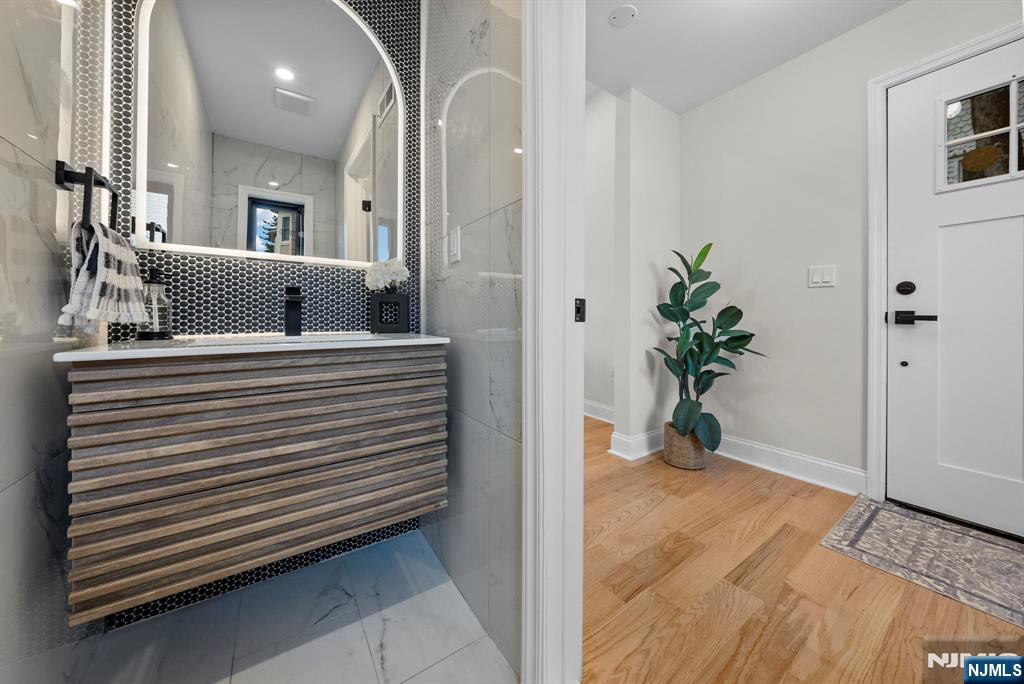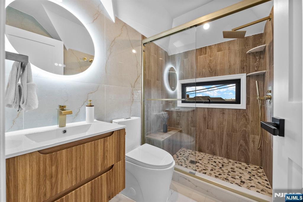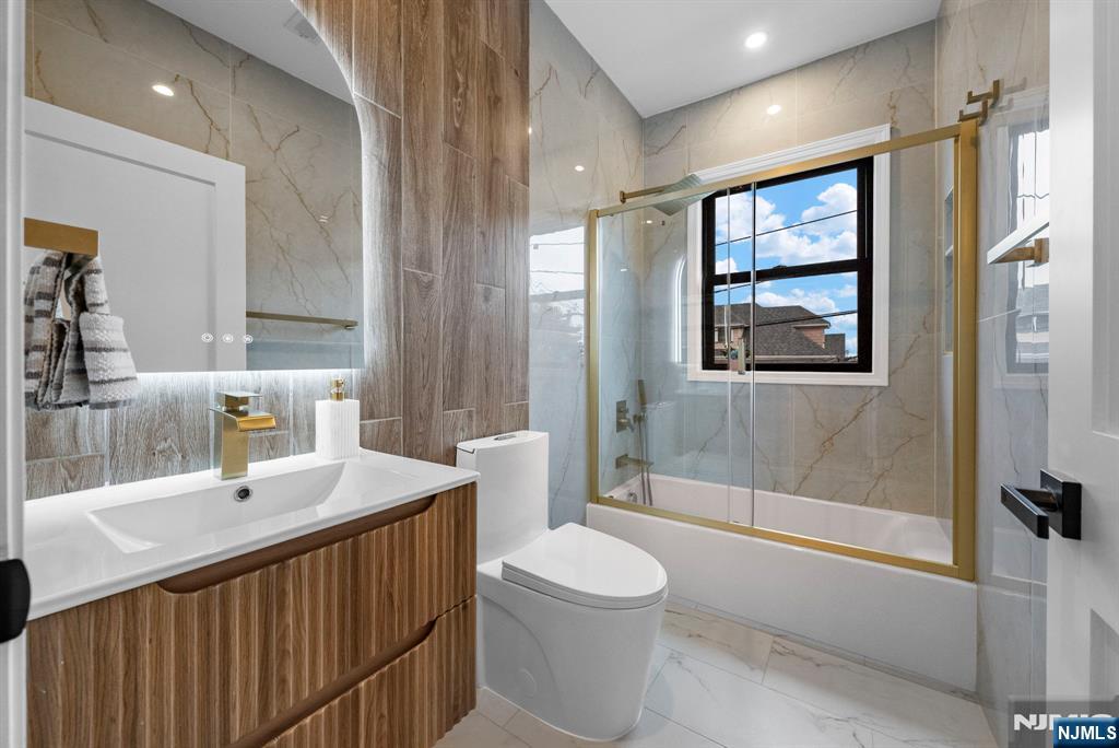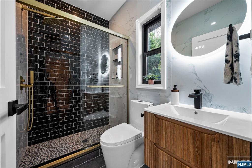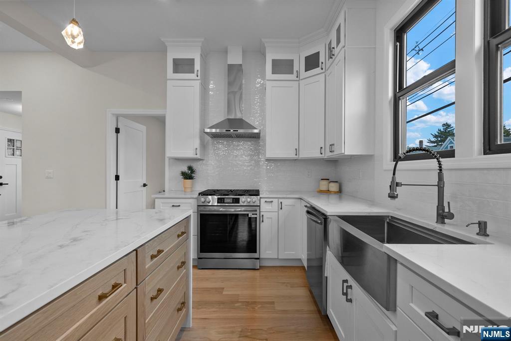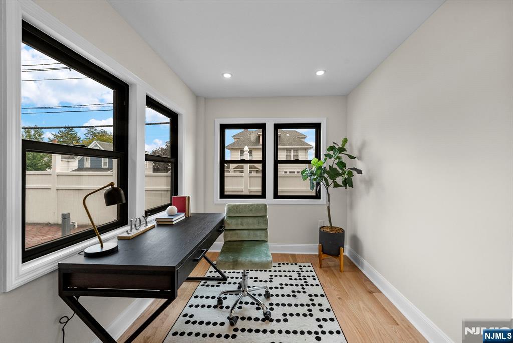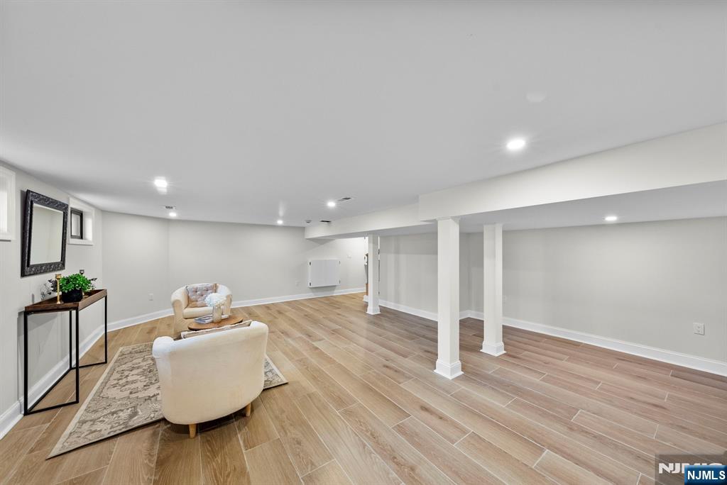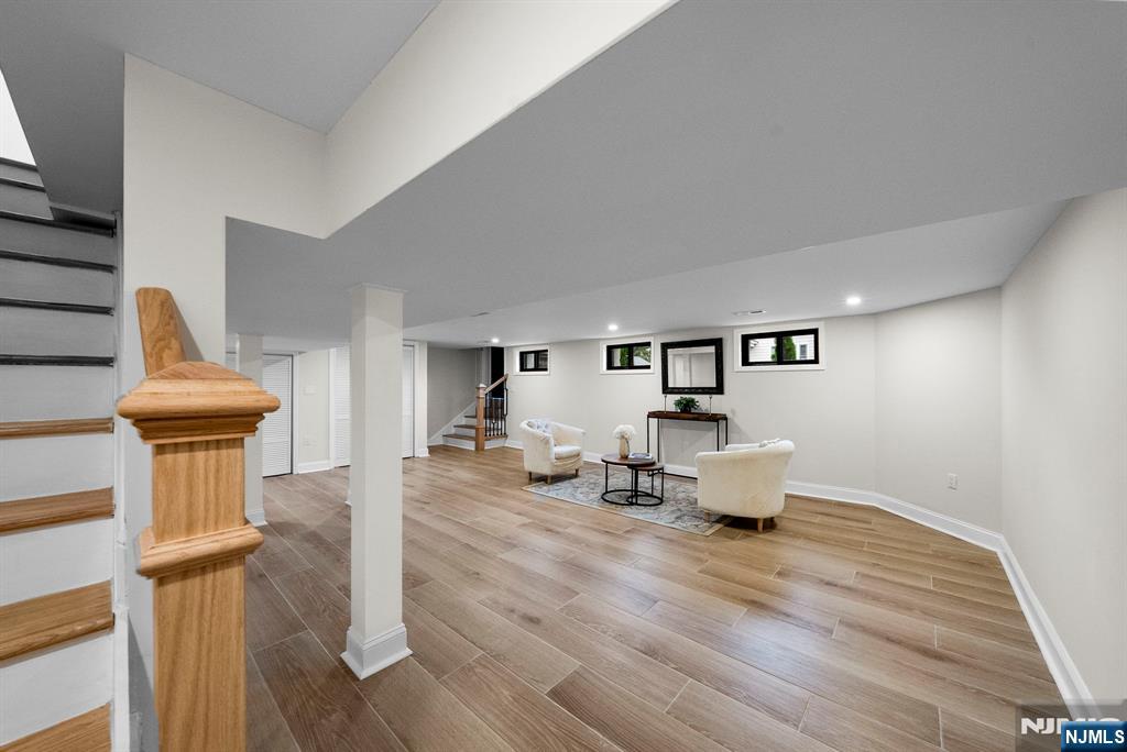 Welcome to 573 Anderson Avenue, Wood-Ridge, where modern design meets skyline views of New York City. This fully rebuilt 5-bedroom, 3.5-bath residence perfectly blends luxury, light, and livability. The open-concept main level invites you in with an elegant flow between the living, dining, and kitchen areas, framed by oversized Andersen windows that flood the home with natural light. At its center, a striking 8-foot island anchors the chef’s kitchen, featuring a full-height designer backsplash, quartz counters, and premium stainless appliances - the ideal space for both gatherings and everyday living. A dedicated office on the main floor adds comfort and function. The second floor offers three spacious bedrooms, including a serene primary suite with a spa-inspired bath and walk-in closet. A second full bathroom completes this level with sophisticated tilework and stone finishes. The third floor expands the home with two additional bedrooms and another full bath, both enhanced by skylights and sweeping views of the Manhattan skyline. Downstairs, the finished basement provides a flexible area ideal for a gym, play room, or media room. Outside, enjoy the private corner lot with an above-ground pool, detached garage, and parking for four.