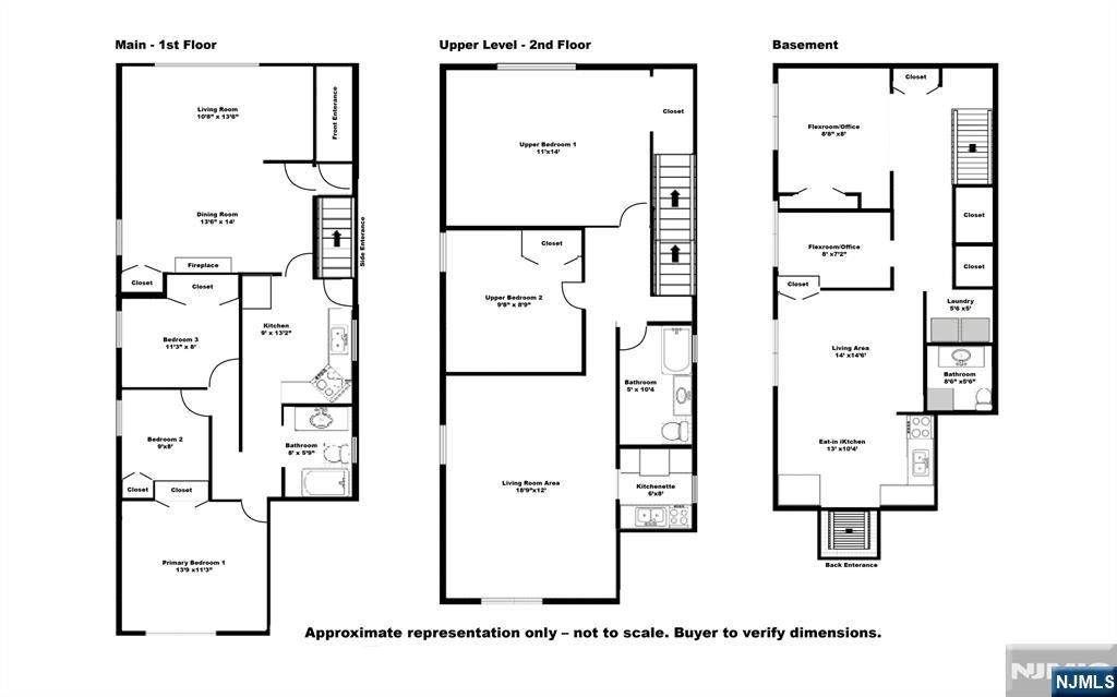 Charming and move-in ready, this newly updated extended family –style home offers space, flexibility, and modern comfort in one of Lyndhurst’s most convenient locationsâ€â€쳌just a short walk to the train station with direct access to NYC. Main Floor: 3 spacious bedrooms, a fully updated bathroom, a large living room, and a modern eat-in kitchen with stainless steel appliances. Upstairs Suite: Private/separate entrance & utilities to 2 bedrooms, an updated bath, a large living room, and a convenient kitchenetteâ€â€쳌ideal for extended family or potential cost-offset scenarios (buyer to verify CO/use). Finished Basement: Full eat-in kitchen, laundry room, abundant storage, additional living space, private office, and an updated bathroomâ€â€쳌endless options for recreation, guests, or an in-law suite. Additional Highlights: • Detached 2-car garage with driveway parking • Private backyard for gatherings and relaxation • All 3 bathrooms fully updated • Brand-new flooring and carpeting throughout Size & Layout: Public record reflects approx. 1,414 sq ft GLA above grade (buyer to verify). Floor-plan estimate indicates ~1,690 sq ft above grade (buyer to verify) + ~570 sq ft finished basement (non-GLA) â€â€쳌 ~2,260 sq ft finished across three levels. Basement finished area is non-GLA and noted separately. Floor plan included in photos. Disclaimer: Square footage and room dimensions are approximate; buyer to verify all measurements and di