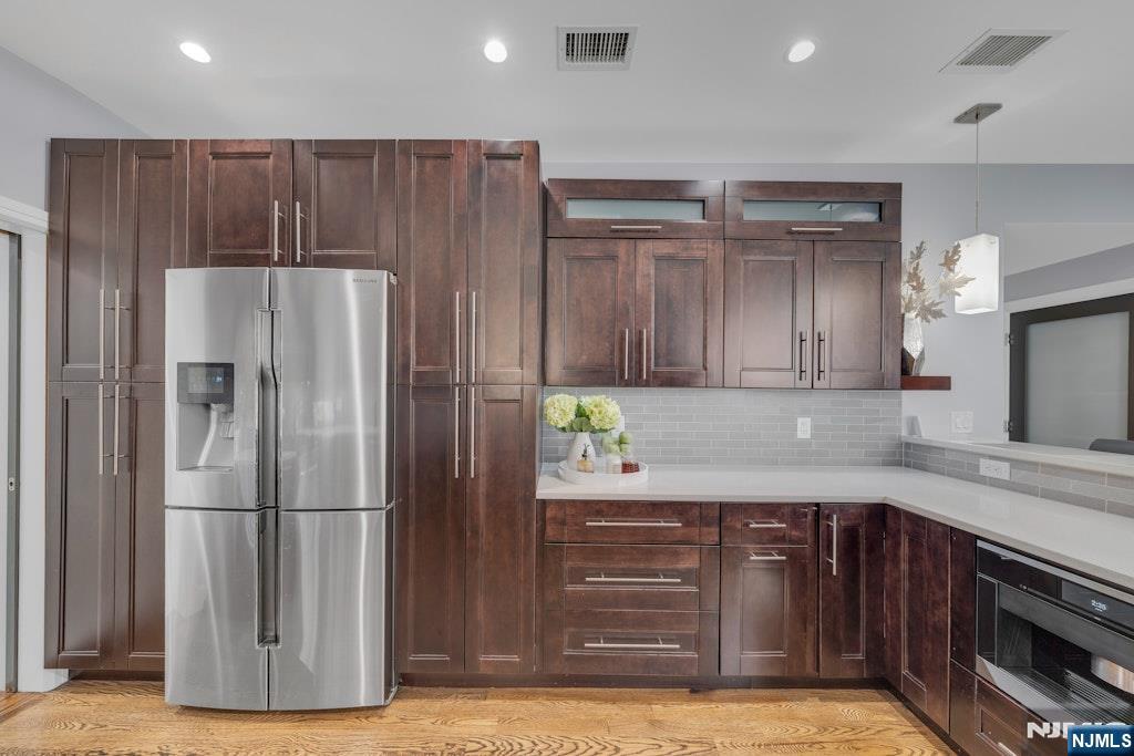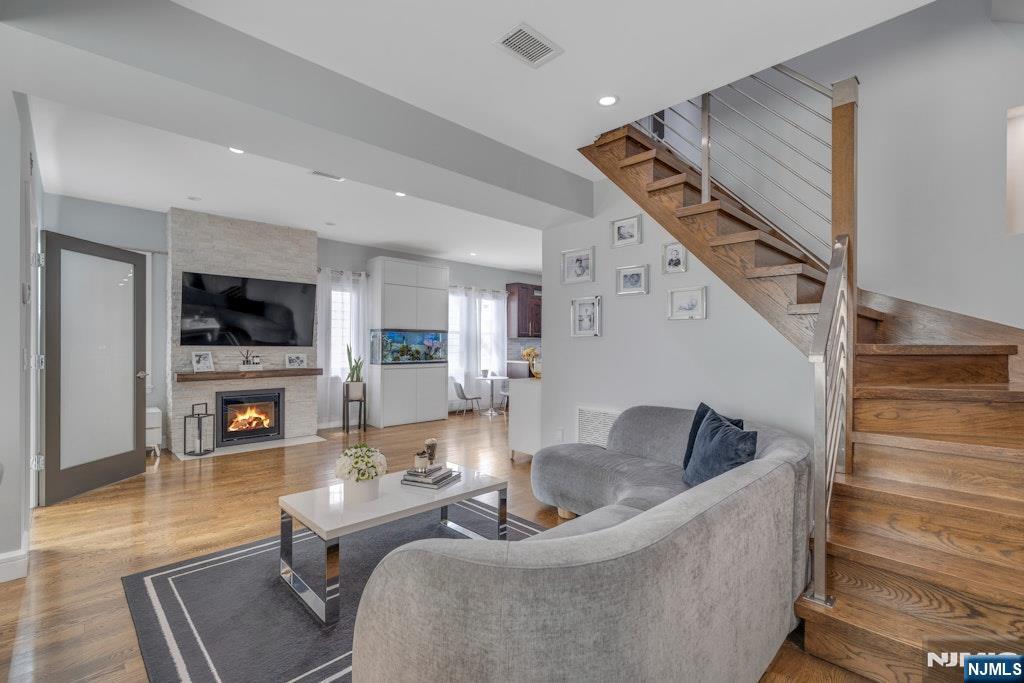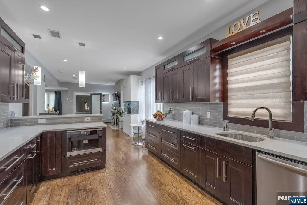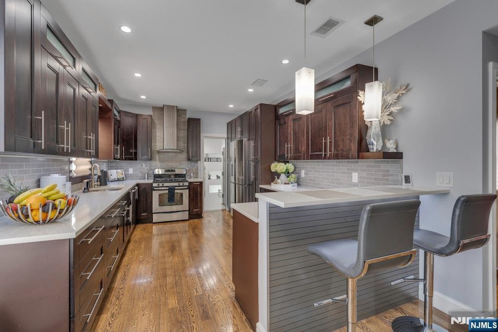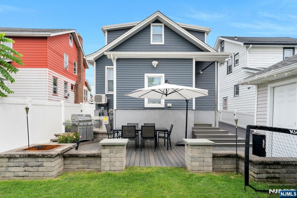 Welcome to this meticulously maintained 4-bedroom, 2.5-bath Colonial, thoughtfully designed to offer the perfect balance of comfort, functionality, and style. The main level features a welcoming entry foyer that flows seamlessly into an open-concept living and dining area, ideal for both everyday living and entertaining. The beautifully appointed eat-in kitchen boasts quartz countertops, stainless steel appliances, and a layout tailored for modern culinary needs. A cozy wood-burning fireplace adds warmth to the space, while a built-in 50-gallon aquarium creates a distinctive focal point. This level also includes a full bathroom and a spacious bedroom with a walk-in closet. The second floor offers three bedrooms and a convenient half bathroom, providing privacy and comfort for family or guests. The fully finished basement is a standout feature, offering a stylish family room complete with a modern bar area, electric fireplace, built-in speakers, a full bathroom, and a dedicated laundry room. Step outside to enjoy a thoughtfully designed outdoor space featuring elevated deck, and built-in fire pit â€â€쳌 perfect for gatherings and seasonal enjoyment - ideal for entertaining or relaxing in style. The extended driveway comfortably accommodates up to four vehicles. Additional highlights include gleaming hardwood floors throughout, ample closet space, and abundant storage. This move-in-ready home is a rare find that combines quality craftsmanship with contemporary convenience.