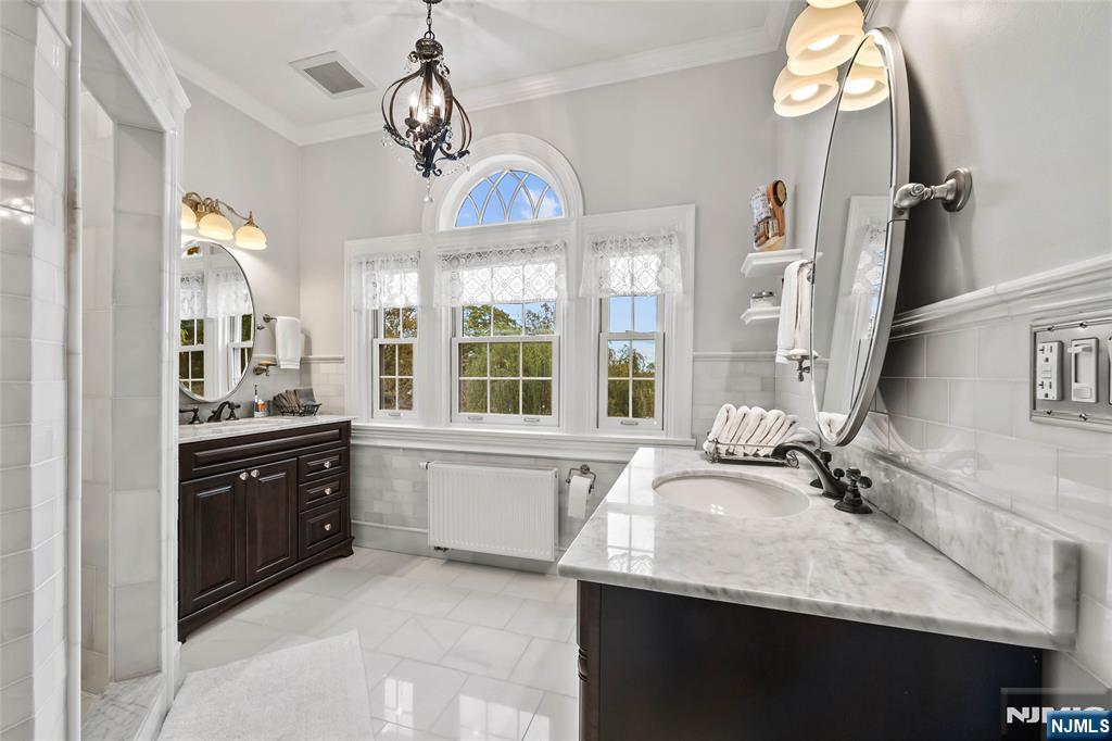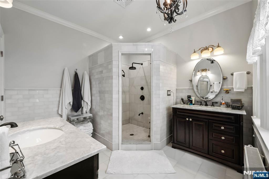 Step into a timeless blend of historic charm and contemporary luxury. Originally built in the 1880s, this beautifully, totally restored home has been meticulously remodeled to preserve its character while offering the comfort and efficiency of modern living. From the moment you arrive, the home’s classic façade welcomes you with pristine landscaping and an expansive porch. Complete with original banisters and period detailing, you are invited to experience a bygone era brought elegantly into the present. The kitchen features all custom cabinetry, modern appliances, and a heated floor. All of the bathrooms have been reimagined with modern design. The three bedrooms on the second floor are spacious and gorgeously designed. The third floor provides flexibility with three more bedrooms, storage space, a full bath, and a window that displays a view of the New York City skyline. A very large skylight in the center of the home adds charm and enchantment as it can be seen from the ground floor through to the sky. Multi-zone heating and cooling allows for comfort in every space. The two car garage and spacious driveway provides ample parking for guests.The owner is a custom builder of luxury homes and sustained its elegant historic character while including both traditional and modern features.
