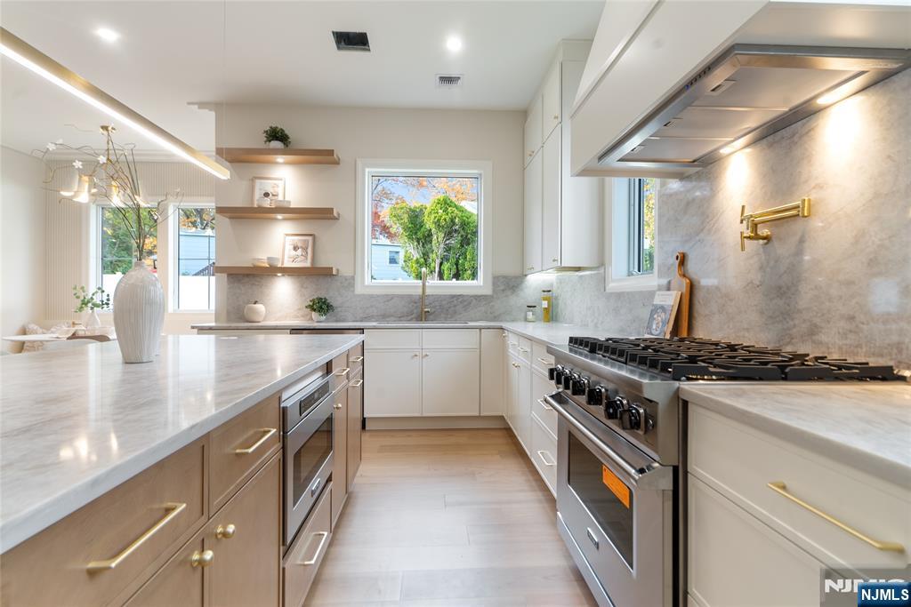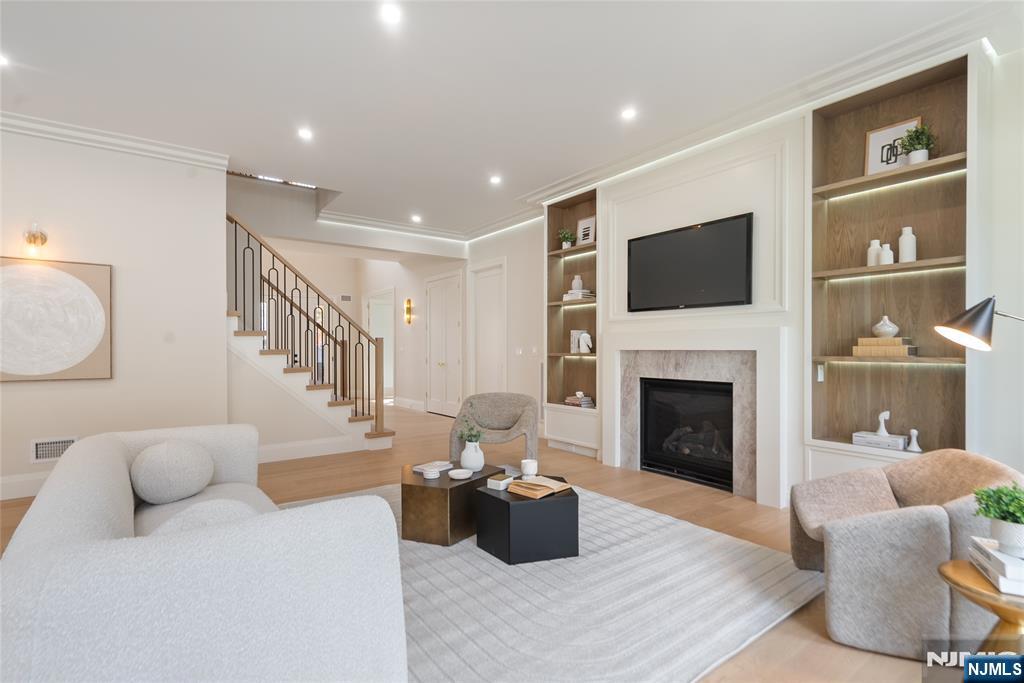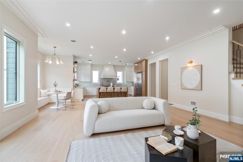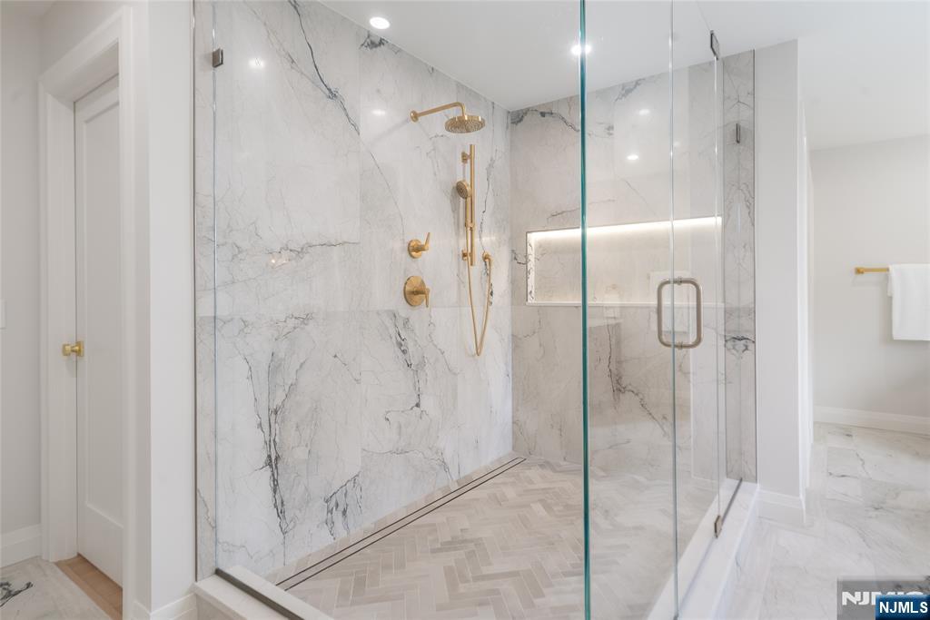 Stunningly luxurious new construction in the low-tax town of Paramus, offering 7,400+ total sq ft on an oversized lot, blending elegant design with top-tier functionality. Features include 10-foot ceilings, custom trim work, and herringbone flooring in the two-story foyer. The main level features a first-floor bedroom suite with ADA-compliant full bath, half bath, office, and formal dining room with wet bar, chef’s kitchen with Viking appliances, custom cabinetry, breakfast nook, and a layout that opens to a spacious backyard (with room for a pool). Upstairs, the primary suite includes 2 custom walk-in closets and a private balcony. 4 additional bedrooms â€â€쳌2 with en-suite bathrooms, a full bath, and a laundry room. Enjoy upscale finishes throughout, including heated floors, floating vanities, and white oak hardwood flooring on both levels. The home is prewired as a full smart home, with hookups for exterior cameras, alarm systems, and customizable automation. Gym, or a movie theater. Wine room, great room with wet bar, and 2 additional bedrooms with full bath.