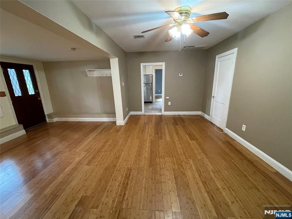 Charming, detached house at the private end of half an acre of property. Your own private 2-bedroom cottage! Stainless steel appliances: dishwasher, microwave, refrigerator, oven. Washer/dryer hookup. Central AC and heating. Hardwood floors! Beautiful granite countertops and vanity. Your own private yard! A great opportunity for someone who wants and needs to stay close to the city, yet enjoys the quiet and calm of suburbia. 2 large bedrooms. Walk-in closet, living room, dining room, stainless steel kitchen with dishwasher, one full bathroom, fenced-in yard. Hook ups for washer and dryer. Even a place for your own garden! Pets OK. NO SMOKING!!! Landlord is paying for garbage removal and water. Tenant responsible for snow removal and lawn care. Lots of storage space. Off-street parking included. Gorgeous New Overpeck Park nearby. NYC bus is 1 block away ( 167 & 182). Approx. 25 min to Midtown and 10-minute drive to Upper West Side. Close to Houses of Worship, shopping (no tax on clothing!), and highways (I-80, I-95, RT 46).