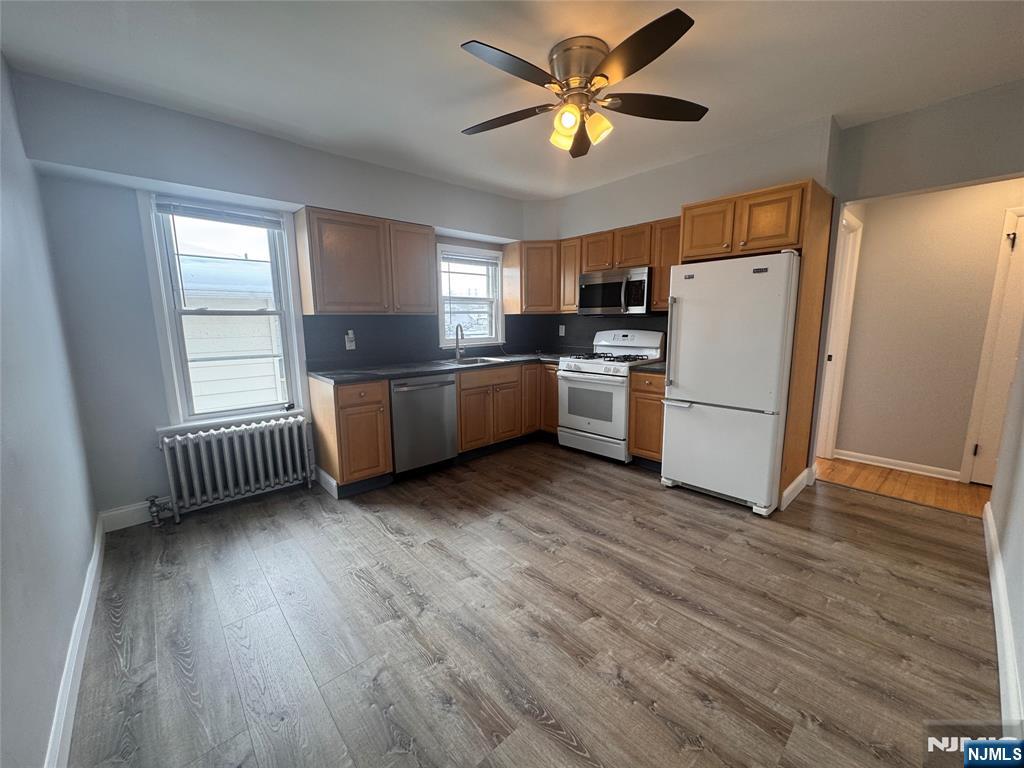 Available for immediate move-in! Welcome to your dream home in a prime location! This beautiful and spacious 2 bed / 1 bath 2nd floor apartment with a bonus room features a large eat-in kitchen, a bright living room, convenient in-unit laundry hookups, plenty of closet space, and pull-down stairs to a giant attic great for additional storage! The bonus room is ideal for a home office, den, nursery, walk-in closet, reading/gaming room, or guest room, and the layout can comfortably function like a 3-bedroom depending on how you choose to arrange the space. Enjoy an updated bathroom, new flooring, ceiling fans & LED recessed lighting throughout. Freshly painted and well-maintained, this home offers ample space to relax and feel at home. Located in the heart of Lyndhurst just minutes to NJ Transit's brand-new Lyndhurst Train Station and approximately 10 miles to NYC or Hoboken. Close to top-rated schools, parks, and dining. The property also includes an oversized, fully fenced backyard with raised garden beds, large sheds, and a spacious patio for outdoor enjoyment. Great parking with both driveway and street options. Modern comfort, convenience, and community all in one great home!