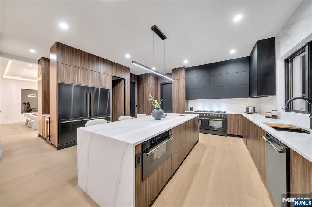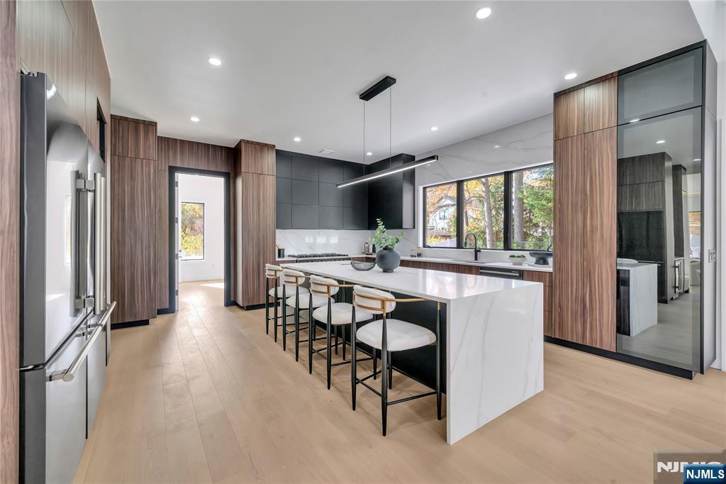 Discover this modern masterpiece in Paramus, NJ. An unparalleled blend of contemporary luxury and California-inspired elegance crafted for today’s discerning buyers.Designed by a premier local builder, this brand new residence showcases a dramatic 20’ entry foyer and great rm with floor-to-ceiling windows, a striking fireplace wall, and expansive natural light for seamless indoor-outdoor living.Just 20miles from NYC, this stunning home offers 6Bed/7 baths, and soaring architecture perfect for both commuters and luxury enthusiasts.The chef’s kitchen features sleek two-tone cabinetry, quartz counters and backsplash, hidden pantry,premium appliances,and a waterfall island.Enjoy the floating glass-and-iron staircase with LED highlights, sophisticated lighting fixtures,glass garage doors,and manicured landscaping. The spa-like primary suite boasts a rainfall shower,soaking tub,and custom walk-in closet.Each junior suite includes a private bath and walk-in closet,with laundry on the second floor for convenience.Designer finishes throughout reflect a commitment to quality and modern style.The open-concept layout connects the great room, formal dining, rec room, butler’s pantry, movie theater, gym, sauna, wet bar, and lower-level private suite.Double French doors open to a lush backyard, ideal for gatherings.Located in one of Bergen County’s most sought-after towns renowned for top schools, shopping, parks, and easy access to NYC.Don’t miss y