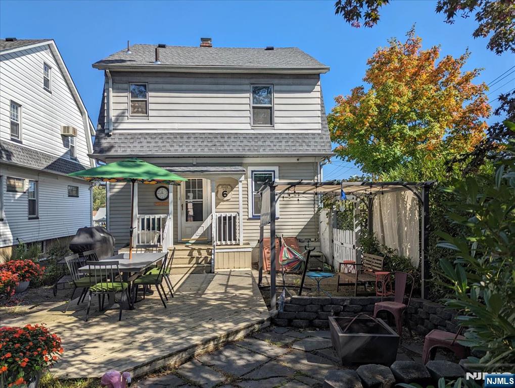Looking for spacious rooms, high ceilings, great natural light, loads of character and a super conventient location? Look no further! Nestled in the heart of everything (!), this spacious Colonial features gorgeous Chestnut molding and wainscoting, beamed ceilings, ribbon-inlay hardwood floors, clever built-ins and more. The first floor flow is easy and inviting, with welcoming Entry Hall, huge Living Room flowing into the Dining Room, bright, cheery Kitchen and Powder Room. Upstairs, the landing is more like another room, with three large Bedrooms and a Full Bath arranged around it. The third floor offers endless potential, an enormous, cathedral ceilinged space - future Primary Suite? Family Room? Guest and Office Suite? The finished Basement offers another hang out option, plus large Laundry and Storage Room and Bilco door to the backyard. The outside is low maintenance, with deck and patio area for cool weather firepits or summer grilling - Pergola and gas grill included! Down the block is Athenia Steel Recreation Complex, NYC bound train just 3 blocks away, Clifton High School 2 blocks away, and so much more! Replacement windows throughout, new boiler (2022), updated electric, French drains, asbestos and oil tank removed. This is an unusual opportunity - welcome home!