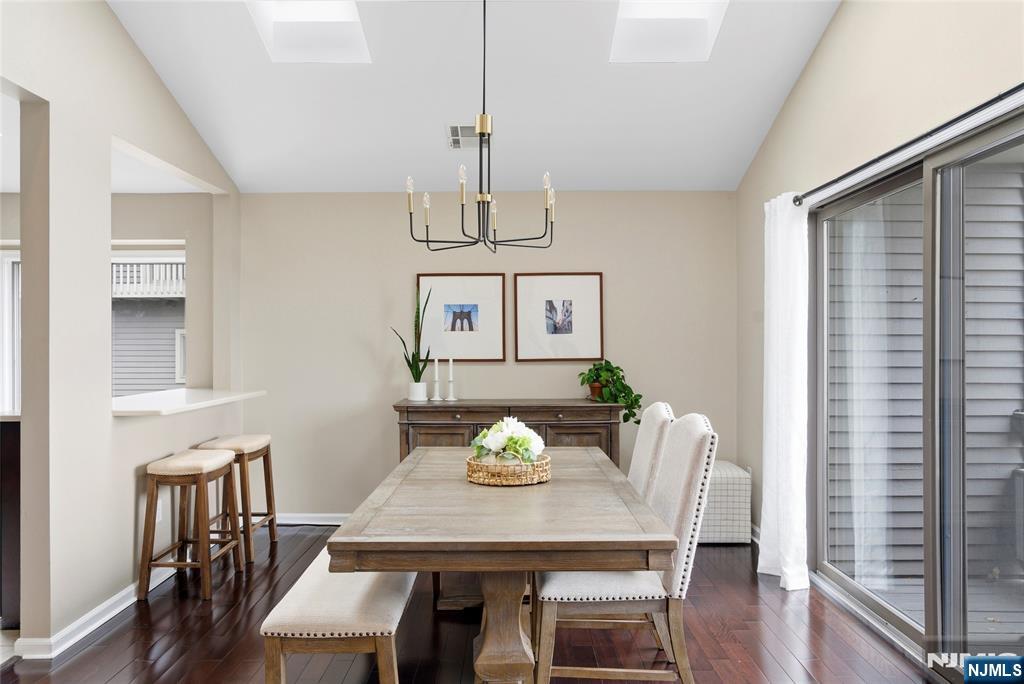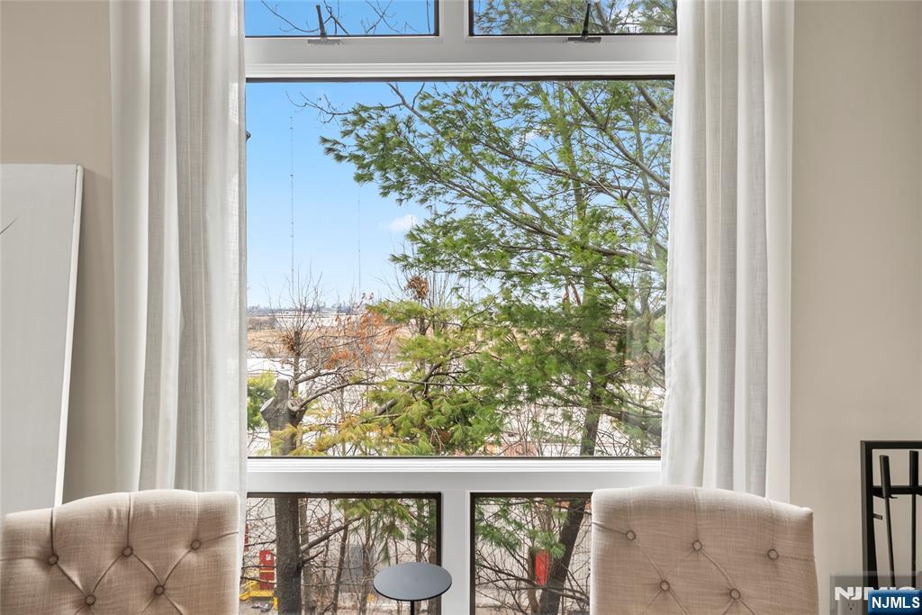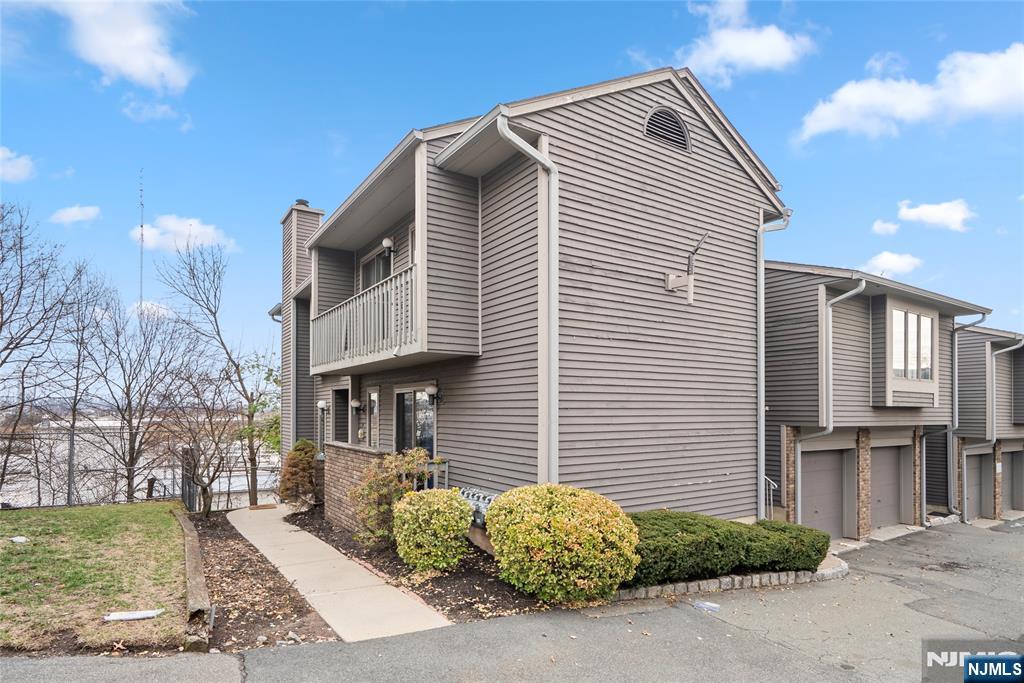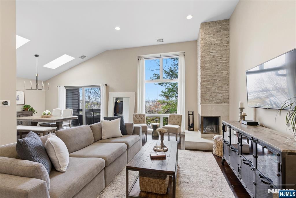 This end-unit townhome in Lyndhurst feels bright, open, and full of possibility from the moment you walk in. Soaring ceilings, skylights, and natural light from multiple exposures create an airy, uplifting feel, while the layout offers space that is easy to settle into and make your own. The main living area is expansive and welcoming, centered around a wood-burning fireplace that brings warmth and character. It is easy to picture cozy nights in, slow Sundays at home, or having friends over with city views as your backdrop. Just off the dining area, a private balcony creates a natural extension of the living space and a perfect spot for morning coffee, fresh air, or dinner outside. The den adds flexibility for a home office, reading room, workout space, or bonus hangout area, and it has its own balcony too. The bedroom offers private outdoor access as well. Each space feels generously sized, comfortable, and designed for real everyday living. With approximately 1,563 square feet, two bedrooms, two full baths, and room to spread out, this home offers a strong balance of function and charm. Central air, a one-car garage, and an additional outdoor parking space add convenience, while the location near Route 3, the NJ Turnpike, NJ Transit, shopping, dining, and local recreation makes everyday life that much easier.